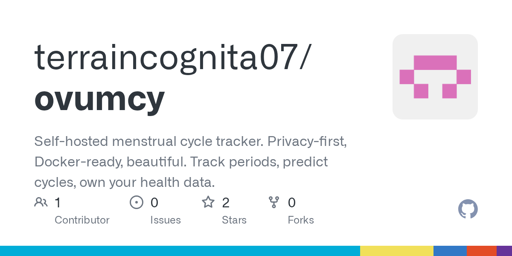 arrow-up1342arrow-down1external-linkI built a self-hosted period tracker because I couldn't find one worth usingplus-squaregithub.comterraincognita@lemmy.world to Selfhosted@lemmy.worldEnglish · 15 hours agomessage-square54linkfedilink