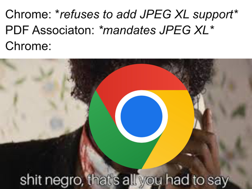 arrow-up170arrow-down1imageGoogle Chrome must be coerced into adopting standardslemmy.worldTheTwelveYearOld@lemmy.worldEnglish · 30 days agomessage-square0linkfedilink