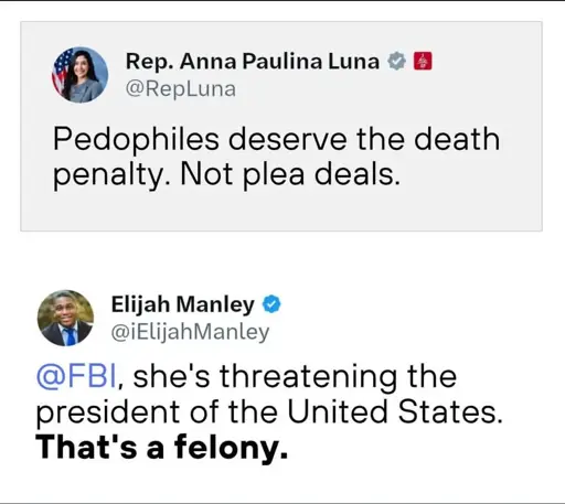 betterdeadthanreddit@lemmy.world · 18 hours agoLadies and gentlemen of this supposed house judiciary committee...plus-squarelemmy.worldimagemessage-square2linkfedilinkarrow-up1197arrow-down10