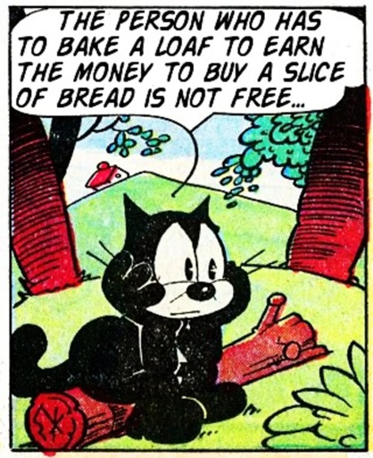 It is a simplification, but it gets the point across. Socialist posters should be truthful and self-evident, I agree. What would you say would be a similarly pithy statement to put in Felix’s mouth here, that is accurate to the reality?