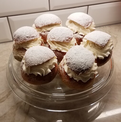 I moved to Sweden recently and one of my friends is showing me all the best treats. Semlor my goodness I don’t even like almonds but these things are amazing. I found out just a couple days ago eating them in a bowl of varm mjölk is a thing too? They’re already so messy to eat but that sounds too good to not try
