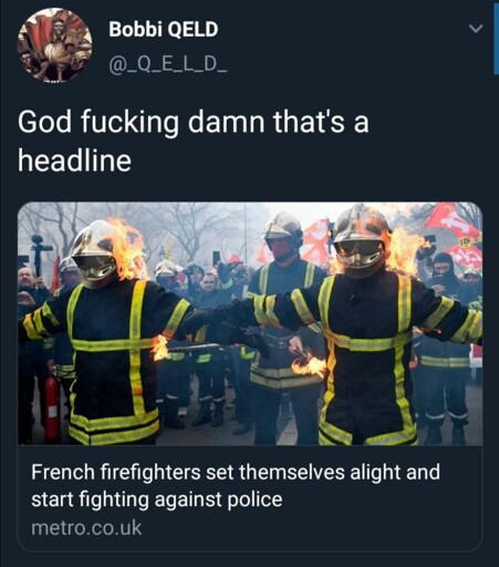 Deceptichum@quokk.auM to Memes of Production@quokk.auEnglish · 6 hours agonobody ever said fuck the fire departmentquokk.auimagemessage-square30linkfedilinkarrow-up1374arrow-down11