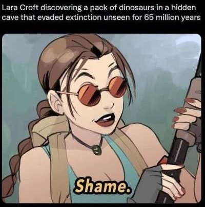 I know you’re joking but thanks to the Internet, I can confirm you do get the shotgun in the lost valley stage where dinosaurs are found. Now that I read up on it, the funniest part to me is that this meme might have actually chose a shotgun for that reason, especially since apparently you can totally take on a T-Rex with a shotgun.