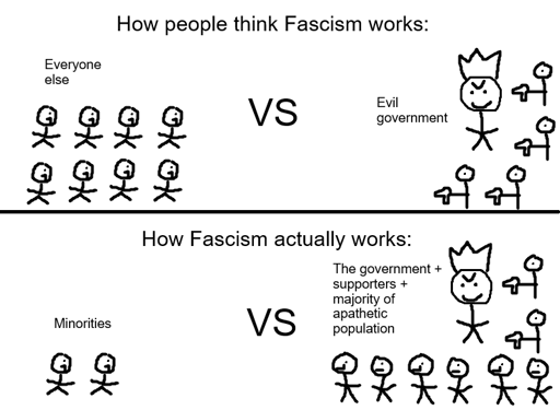 Also still many believe, that fascism starts with a literal cartoon villain proclaiming he’s “literally Hitler 2.0”