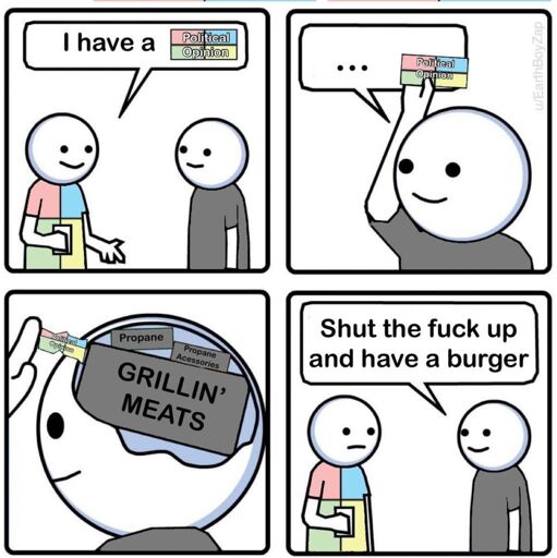 Have a burger, then three beers later I’ll talk to you about politics