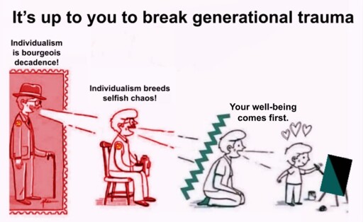 Egoism is not “rugged individualism” or whatever ML slander you want to call it, it is co-operation. Voluntary co-operation out of wanting to see others live their best lives and be free rather than a because a system says you must. Egoism is everyone cooperates because it’s not we together, it’s we want you to have a life full of well-being and will find a way to accommodate you that works for everyone.