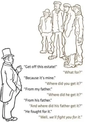 The owner of the estate only “owns” the land because, generations ago, his forefather stole it. Why does he have a right to keep it?