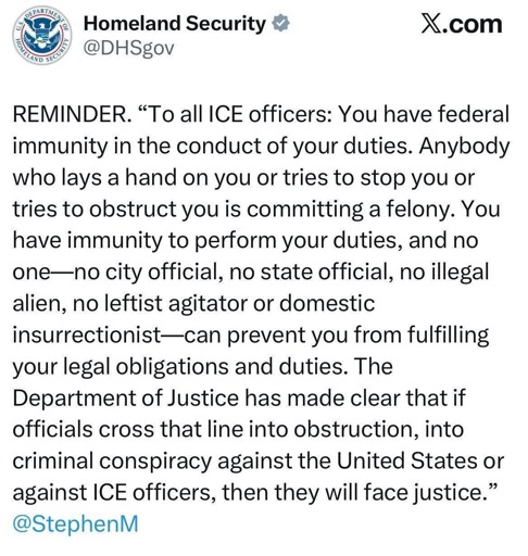 arrow-up1396arrow-down1imageStephen Miller, not part of DHS, issues reminder that federal agents can ignore state laws and constitution.lemmy.worldFauxPseudo @lemmy.world to Political Weirdos @lemmy.world · 2 months agomessage-square45linkfedilinkfile-text