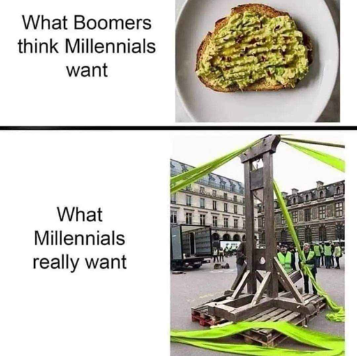 don’t promote the guillotine, it’s a symbol of the revolution going wrong and terrifying the population. people want community, resources, and a good life. that requires bringing down the system, not revenge fantasies against specific people