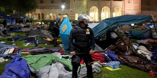 Yet these nonviolent protests have met with the full brutal force of the U.S. security state. Dispersing the protest encampments, police have viciously beaten protesters, fired rubber bullets, and enveloped students in dense clouds of tear gas.