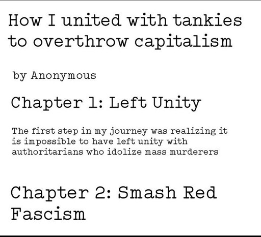 I gotta be honest I’m kinda distracted by the active fascist takeover in my country right now. Tankies are annoying and potentially a threat in the future but they’re fighting against that right now. So while I am not in support of left unity in a strategic sense, there can certainly be a form of tactical unity.