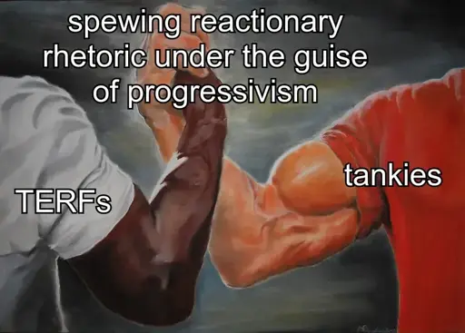 Modern tankies defend historical “communist” states and their successer states like Russia. They can often be seen glorifying dictators and denying genocides.