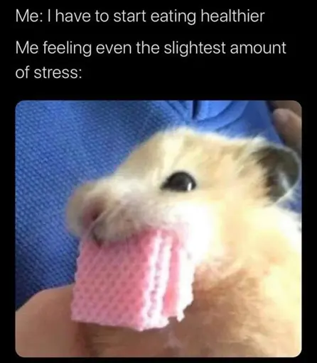 compostgoblin@lemmy.blahaj.zone to memes@lemmy.world · 9 months agoStress eating is my weaknesslemmy.blahaj.zoneimagemessage-square0linkfedilinkarrow-up11arrow-down10