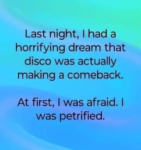mortn@lemmy.world to memes@lemmy.world · 3 months agoDisco comebacklemmy.worldimagemessage-square0linkfedilinkarrow-up11arrow-down10